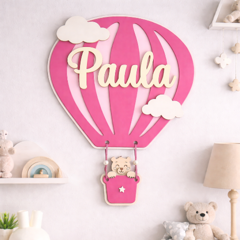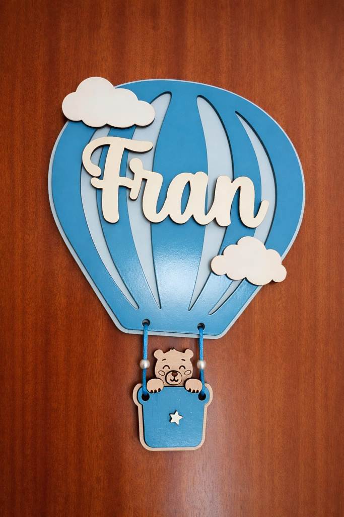 Decora la habitación de tu bebé con este globo aerostático personalizado en madera, una pieza única ideal como decoración infantil personalizada o regalo de nacimiento original.