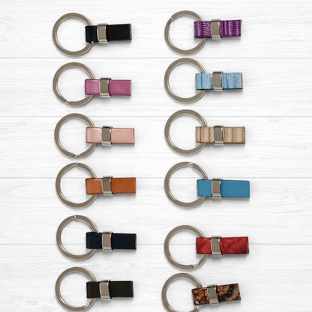 Kit llavero de cuero y acero inoxidable.